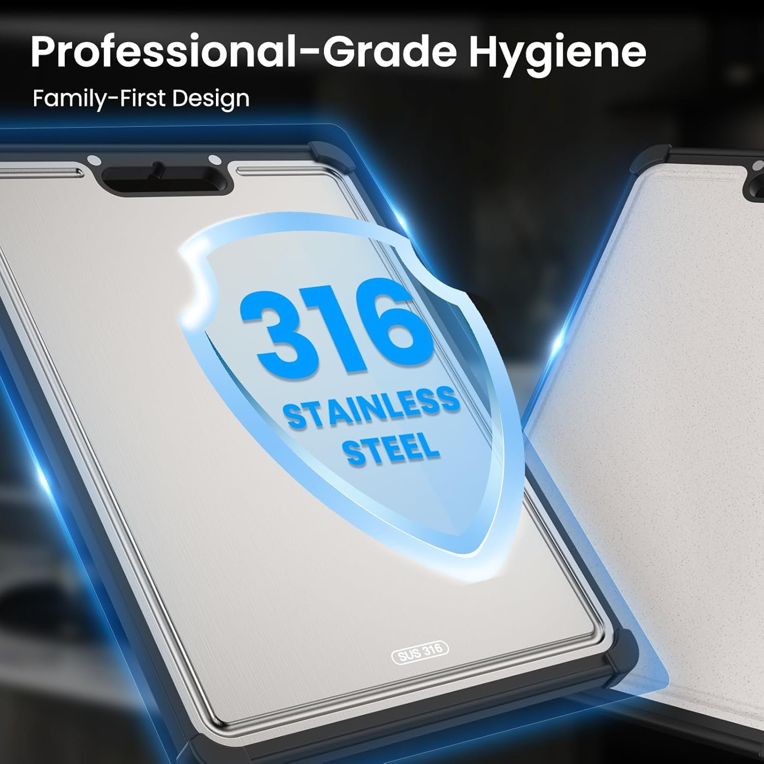 - Premium 316 Stainless Steel for Safer Cooking stainless steel cutting board Dual-sided food-grade craftsmanship, Eco-Friendly Wheat straw fusion,, corrosion resistance, and anon toxic cookware solution for modern kitchens. Healthy Modern Kitchen Essential for Elevated Living